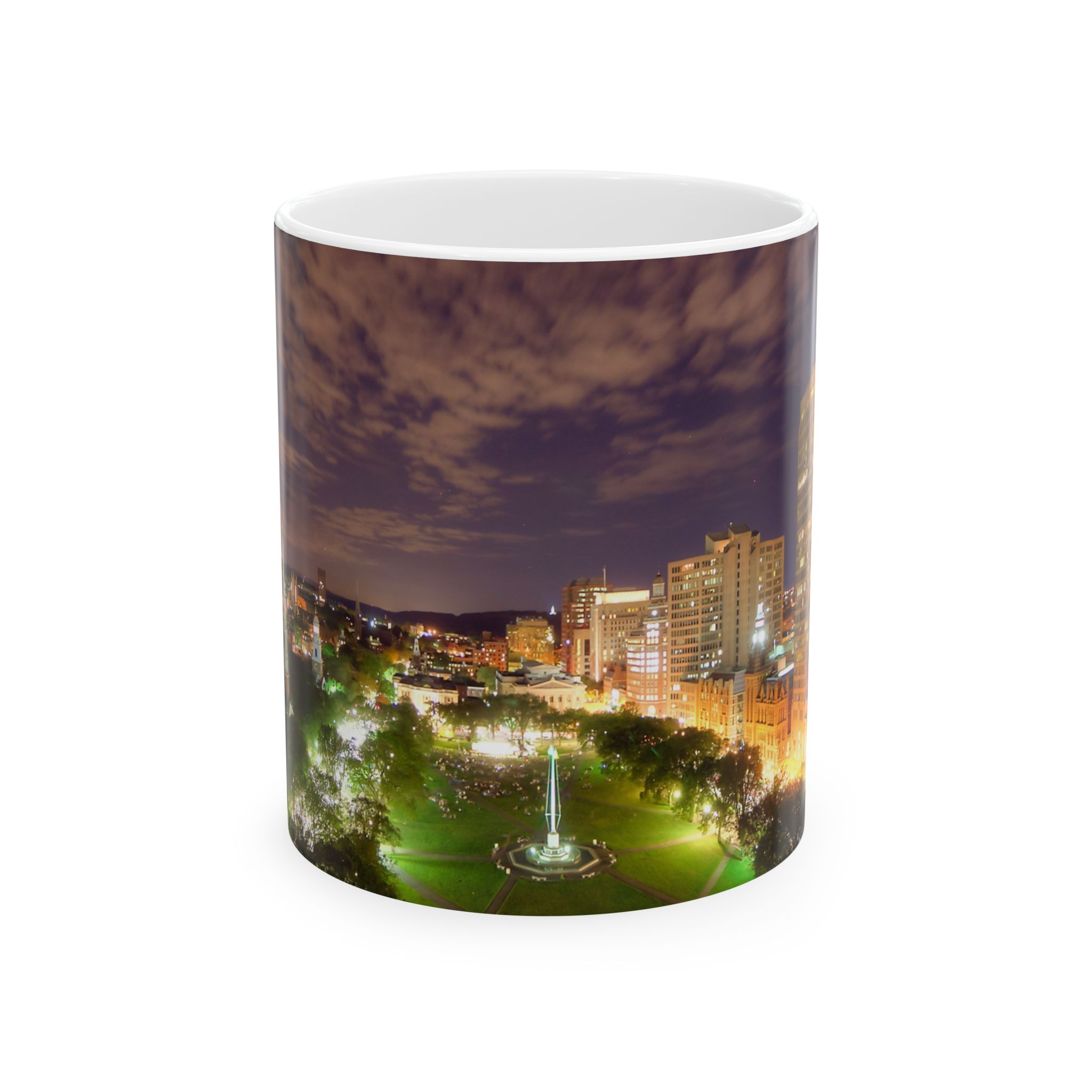 Introducing a stunning ceramic mug that combines functionality with iconic New Haven style with this New Haven Green photo by Chris Randall. This mug radiates warmth and charm, making it the perfect companion for your morning coffee or cozy tea time. Imagine sipping your favorite beverage while basking in the delightful design that brightens up any room. Ideal for anyone who loves unique and artistic drinkware, this mug makes an excellent gift for coffee lovers, tea enthusiasts, or those who appreciate a touch of creativity in their daily routine. Perfect for holidays like Christmas, birthdays, or just as a thoughtful surprise, this mug is suitable for any occasion where you want to share joy and warmth. Elevate your mornings and spark conversations with this delightful piece!